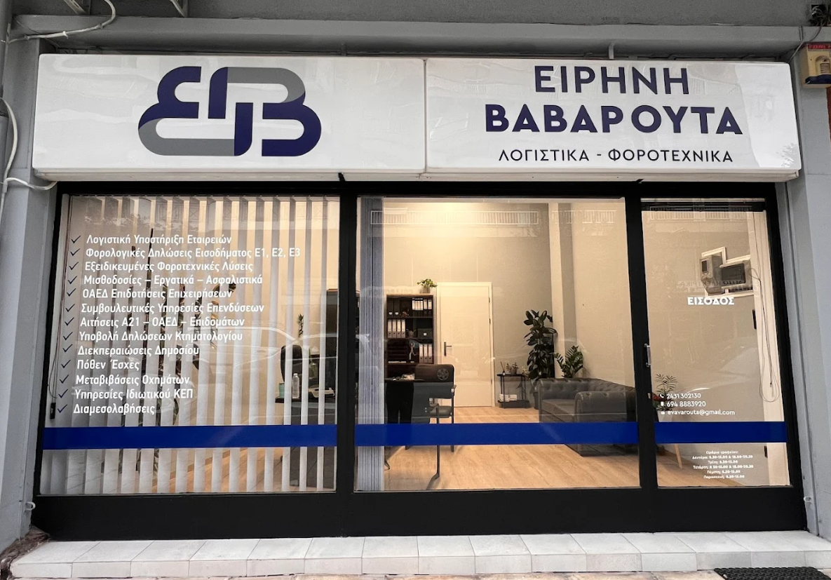 Το λογιστικό γραφείο της λογίστριας Ειρήνης Βαβαρούτα βρίσκεται στα Τρίκαλα και διαχειρίζεται πάσης φύσεως ζητήματα αφορούν τα οικονομικά ζητήματα εταιρειών και ιδιωτών.